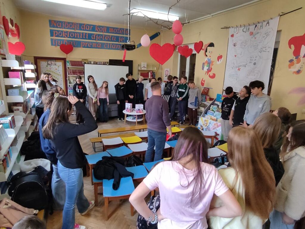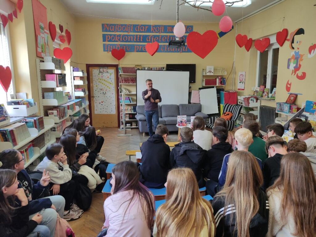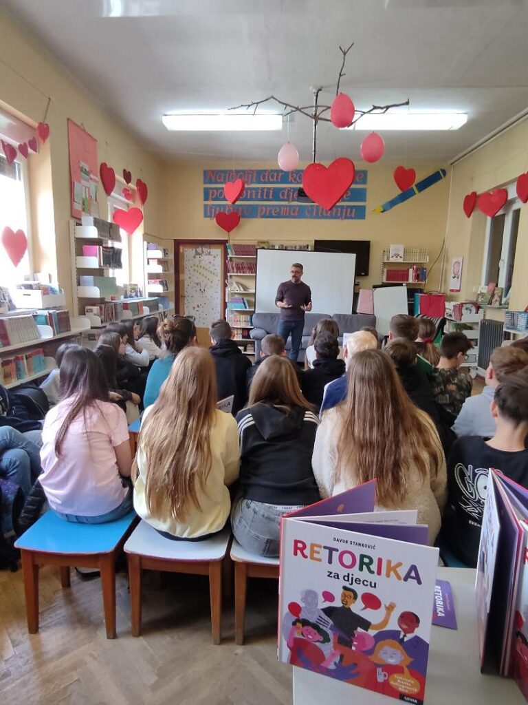 U petak, 20. ožujka u našoj smo školskoj knjižnici ugostili Davora Stankovića, autora knjige Retorika za djecu. Upoznao je učenike s pojmom retorike, otkrio nam je neke tajne govorničkih vještina, a najbolji dio su bile vježbe koje smo s veseljem odradili. Ove zabavne vježbe naučile su nas kako stati pred publiku i argumentirano iznijeti svoje stavove. Davor Stanković je kroz svoju profesionalnu karijeru pripremao mnoge televizijske i radijske voditelje i spikere, radio sa studentima, poslovnim ljudima, glumcima i pjevačima kao npr. s Baby Lasagnom. Bilo je jako zabavno i zanimljivo! Druženje s autorom omogućila nam je Naklada Ljevak i na tome im velika HVALA!
