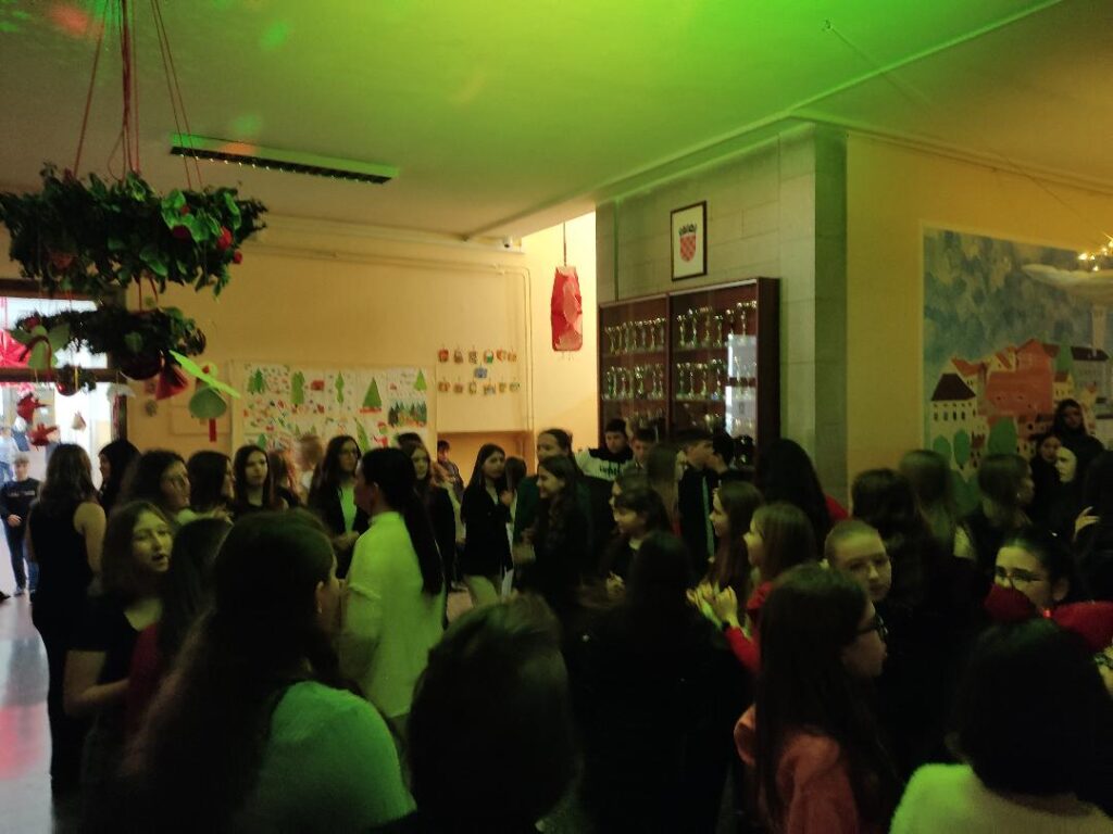 DJ Mlinx zagrijao je atmosferu koja je ubrzo postala plesna i razigrana te su učenici rado sudjelovali u svim predviđenim igrama. Pravom božićnom ugođaju dali su doprinos roditelji i učenici koji su donijeli kolače, grickalice i sokove.