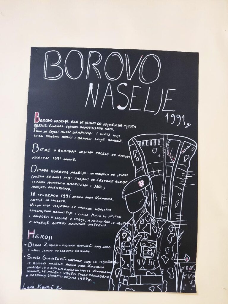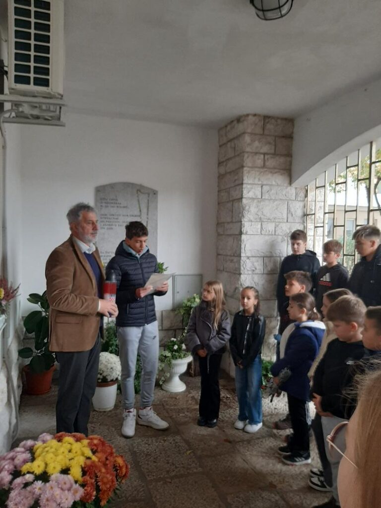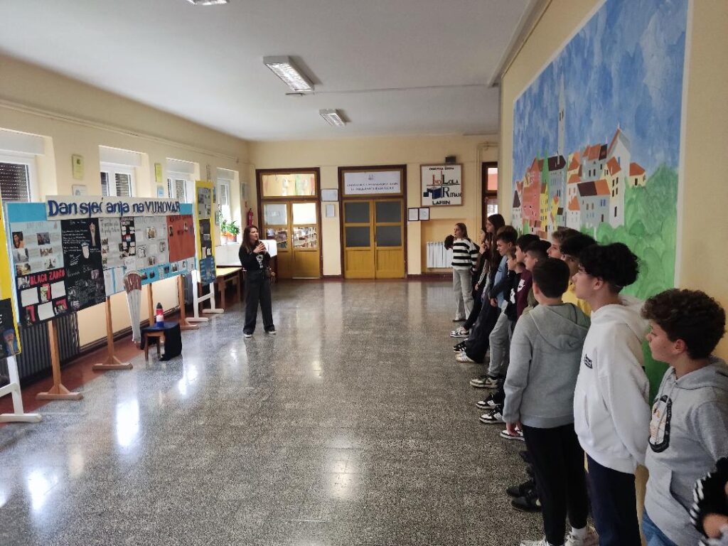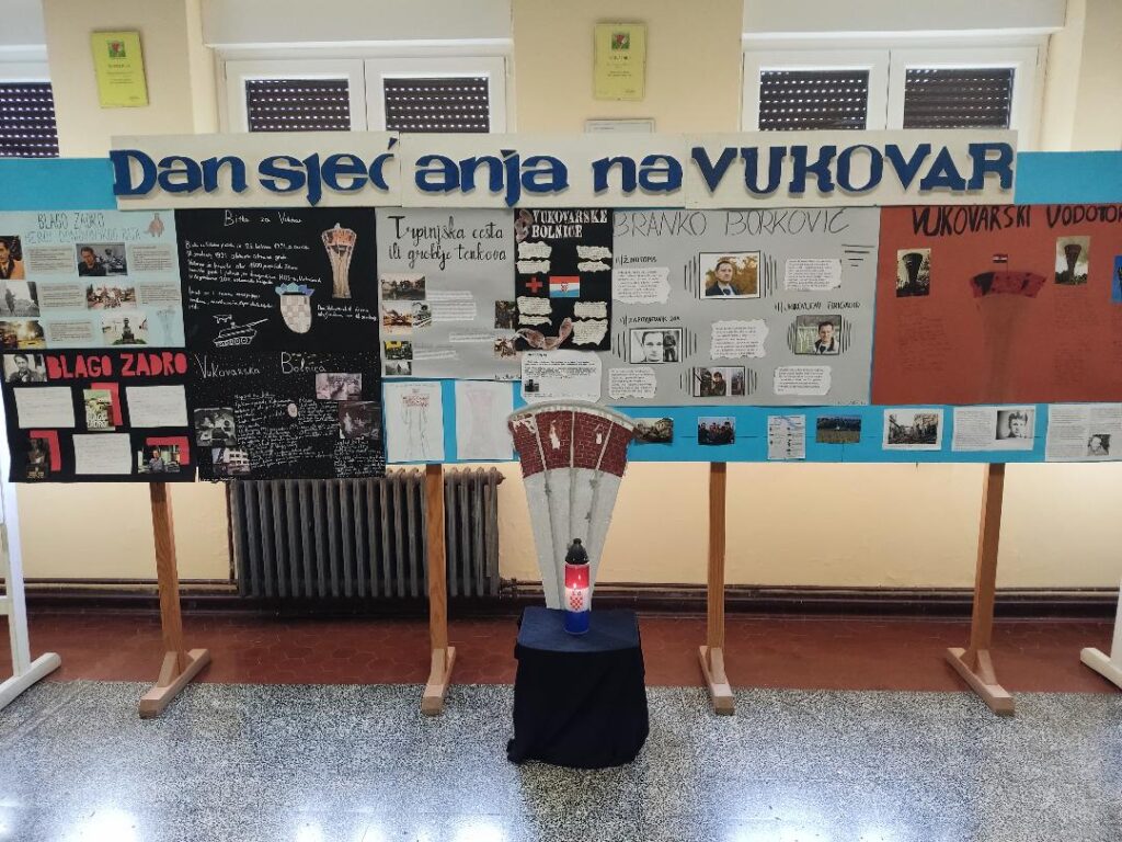 Dana, 17. studenoga 2025. godine u našoj je školi obilježen Dan sjećanja na žrtvu Vukovara i Škabrnje kako u matičnoj tako i u područnim školama. Predstavnici Vijeća učenika su u pratnji ravnatelja, pedagoginje, učiteljice Povijesti i velečasnog Blaža Bošnjakovića posjetili spomen-obilježje žrtvama Vukovara kraj crkve sv. Franje u Podlabinu te upalili svijeće za žrtve uz molitvu i čitanje prigodnih tekstova Siniše Glavaševića. Učenici škole su svojim porukama, likovnim i literarnim radovima, željama za napretkom Vukovara i boljitkom grada ukrasili školske panoe. Nastava Povijesti bila je posvećena Vukovaru, učenici su izradili prigodne plakate na kojima su predstavili sve što su istražili o ovom danu, a u mlađim i starijim razredima gledane su prezentacije i dokumentarni filmovi koji svjedoče o žrtvi Vukovara, grada koji je svoju patnju i herojsku obranu utkao u hrvatsku slobodu i neovisnost. Učenici koji pohađaju dodatnu nastavu Povijesti su sa svojim učiteljicama posjetili Park hrvatskih branitelja gdje su odali počast žrtvama Domovinskog rata.