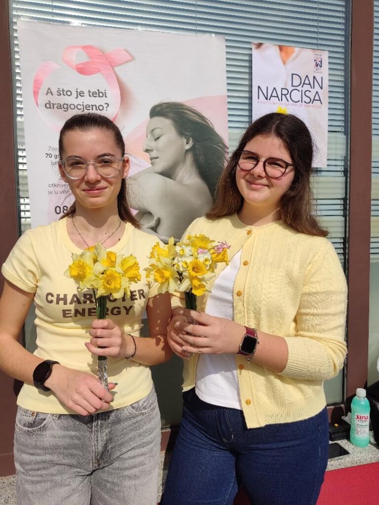 Naše Gradsko vijeće mladih već tradicionalno sudjeluje u akcijama Lige protiv raka Labin pomažući na punktovima ili u izradi materijala koji se dijele građanima na punktovima. Dana 21. ožujka obilježava se Dan narcisa kojim se želi upozoriti na prevenciju raka dojke i češće preglede građana. Naši su vijećnici pomagali na dva punkta Lige i to u Kršanu i Opskrbom centru. U Kršanu su sudjelovale osmašice Leonarda i Dora, a u Opskrbnom centru Robi i Anja, učenici 7. razreda. Hvala im na pomoći i dobroj volji!