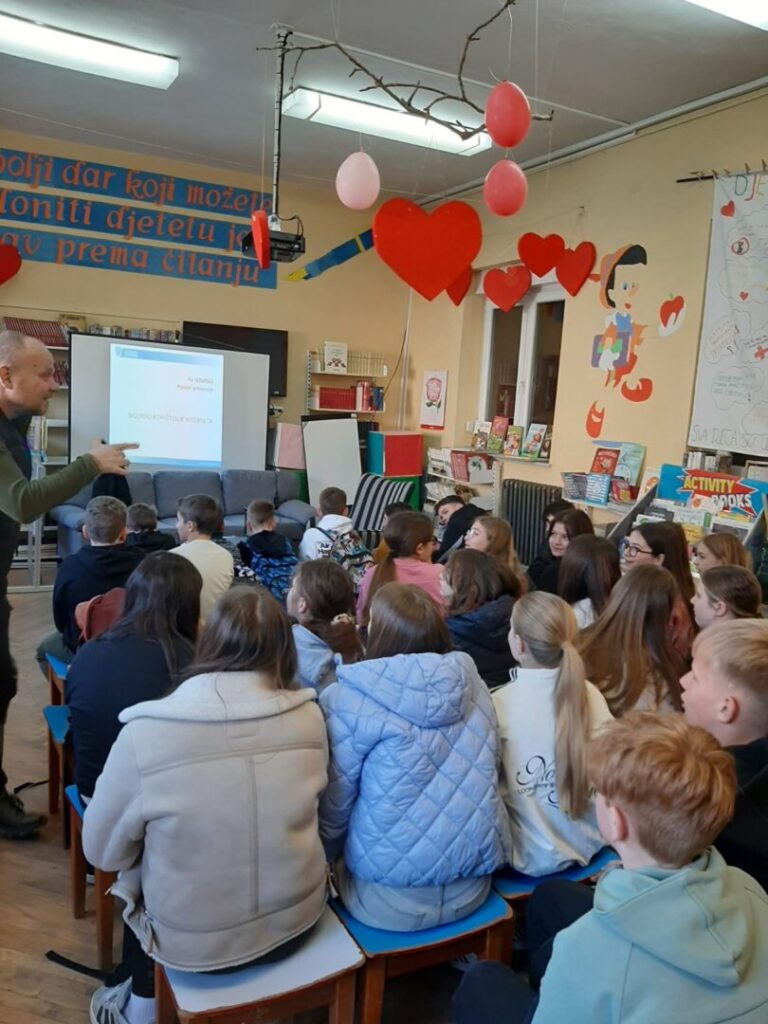 Kroz interaktivno izlaganje gospodina Roberta Pavlekovića učenici su upoznati s oblicima elektroničkog nasilja, njegovim posljedicama te načinima kako se zaštititi i odgovorno koristiti digitalne tehnologije. Poseban naglasak stavljen je na važnost pravodobnog reagiranja i traženja pomoći u situacijama neprimjerenog ponašanja na internetu.