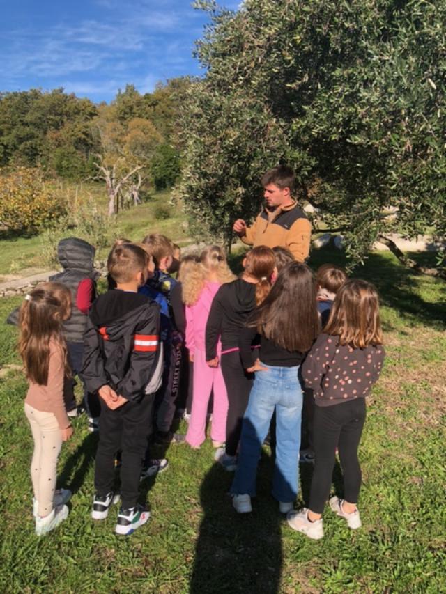 Terensku nastavu započeli smo u masliniku gdje su djeca učila o sortama maslina i koristi maslina za ljude.