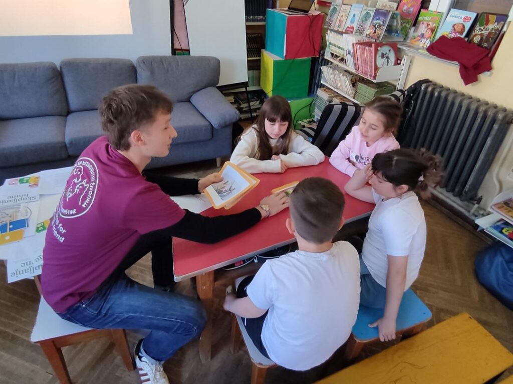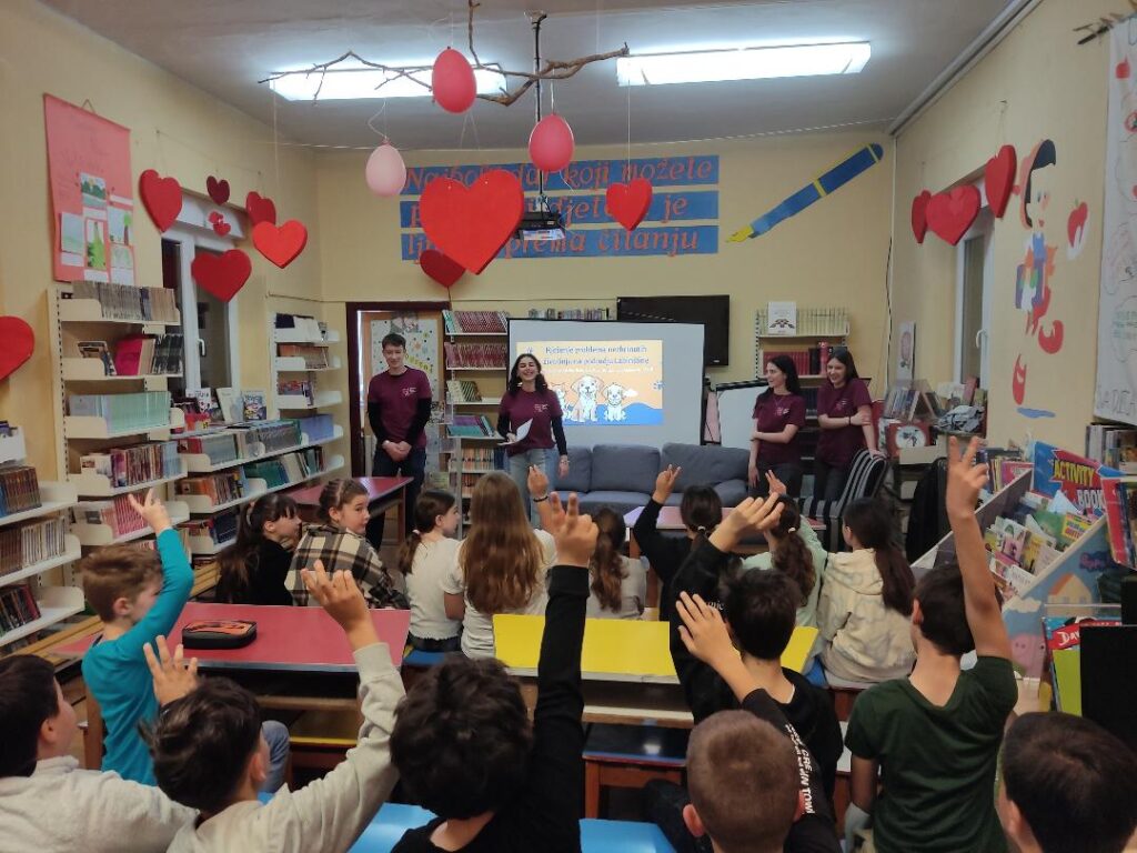 Labinski srednjoškolci Aurora, Vigo, Marika i Elin održali su predavanje i radionicu za učenike 3. i 4. razreda matične škole u srijedu, 22. travnja. Tema predavanja je Rješenje problema nezbrinutih životinja na području Labinštine. Učenici su rado odgovarali na pitanja srednjoškolaca i davali svoje prijedloge za rješenje ovog velikog problema. Podijelili su svoja iskustva brige za svoje kućne ljubimce i kako se treba odgovorno odnositi prema životinjama. Nakon teorijskog dijela učenici su svoja znanja pokazali podijeljeni u grupe kroz kratke kvizove, kroz koje su ih također vodili srednjoškolci.