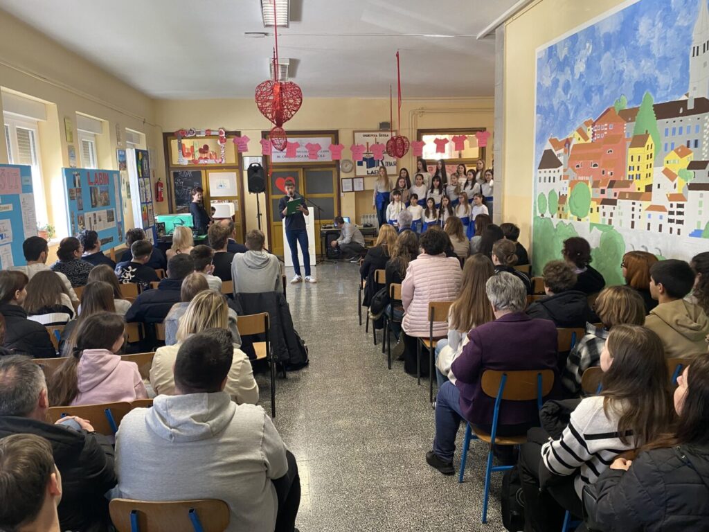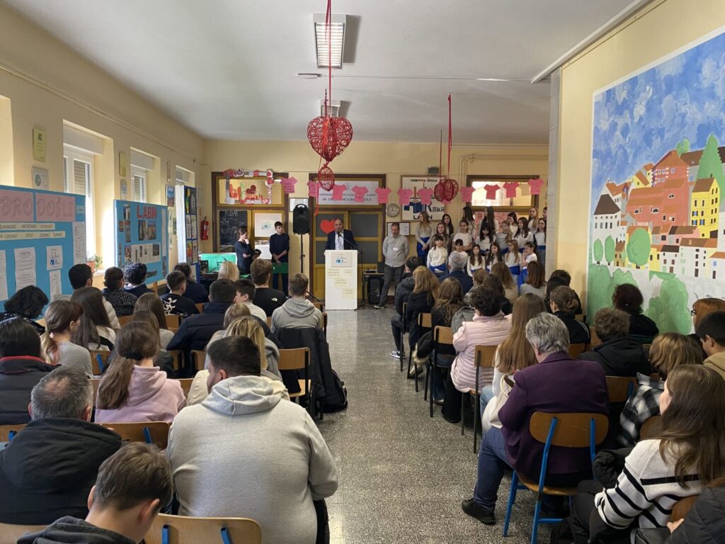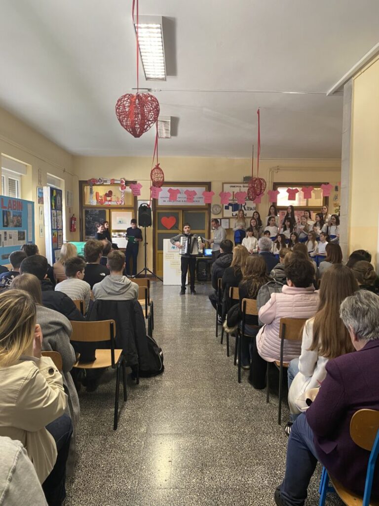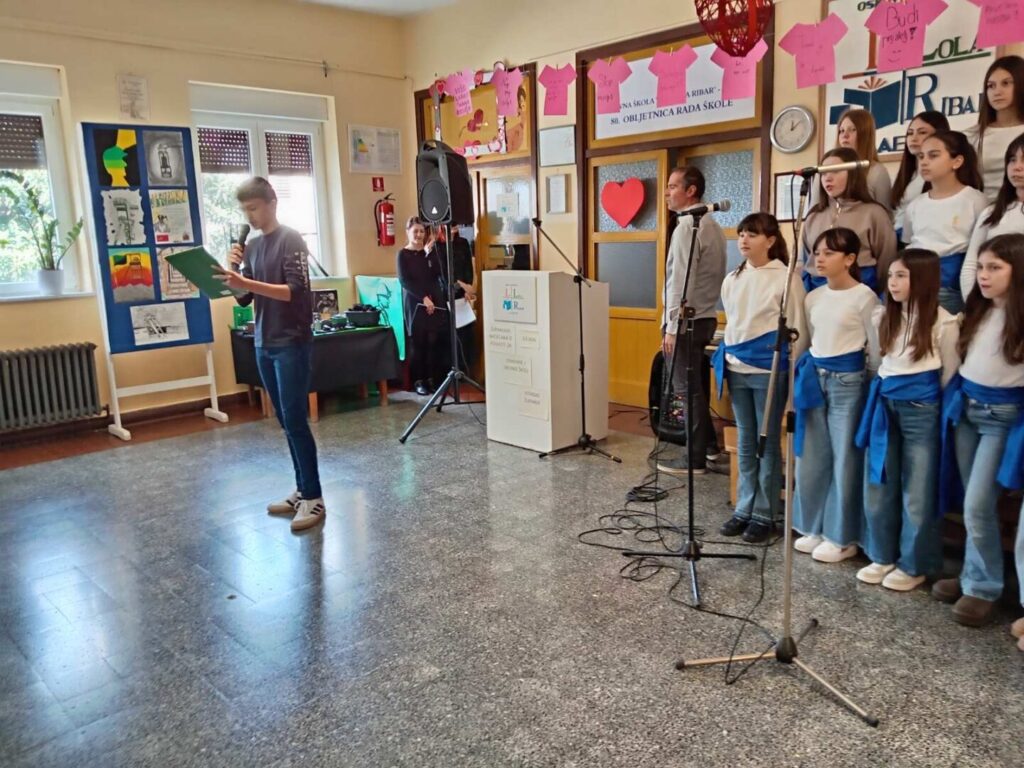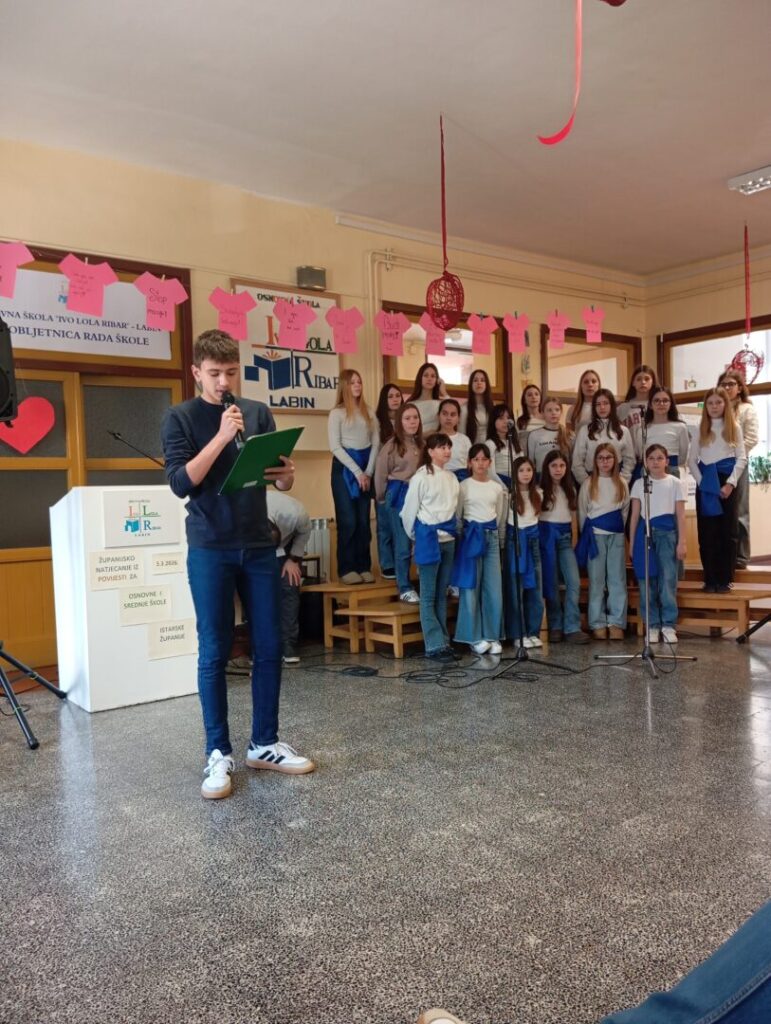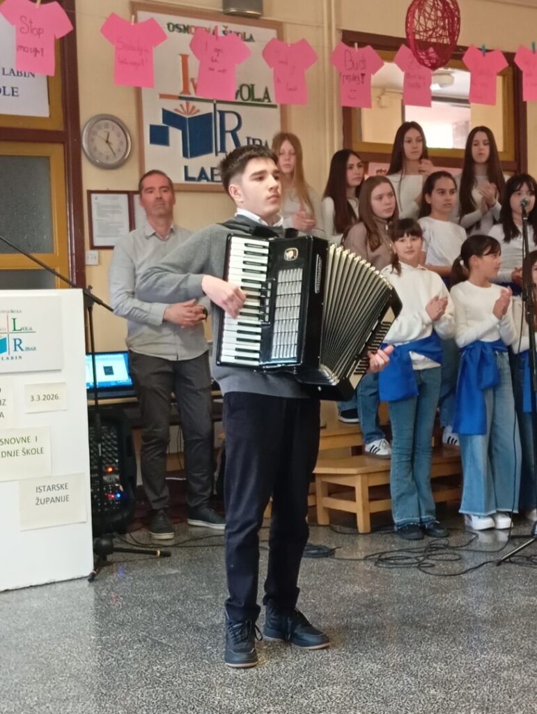 Dan je započeo prigodnim programom dobrodošlice koji je sigurno i dojmljivo vodio naš učenik Matias Batelić. Svečanom ozračju pridonio je školski zbor, a posebno je oduševljenje izazvao nastup učenika Orlanda Lukeža koji je na harmonici izveo balun, unijevši u program dašak istarske tradicije.